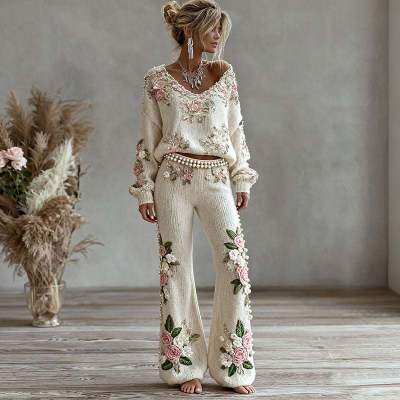 Artistic Vintage 3D-Printed Linen Wide-Leg Pants