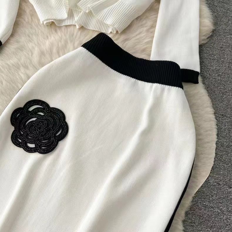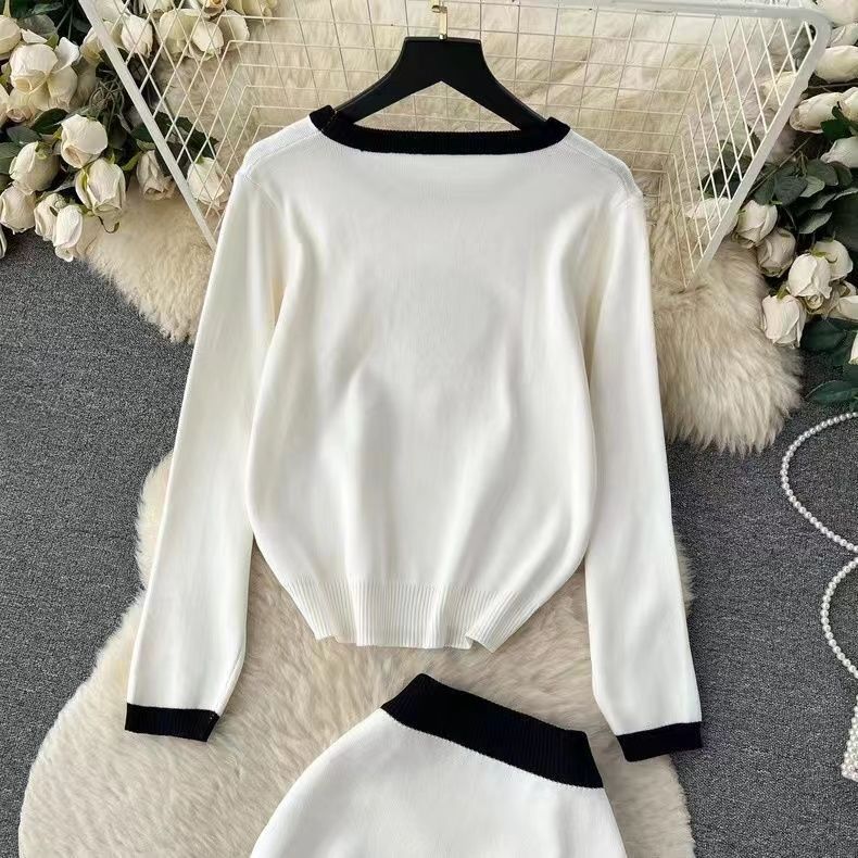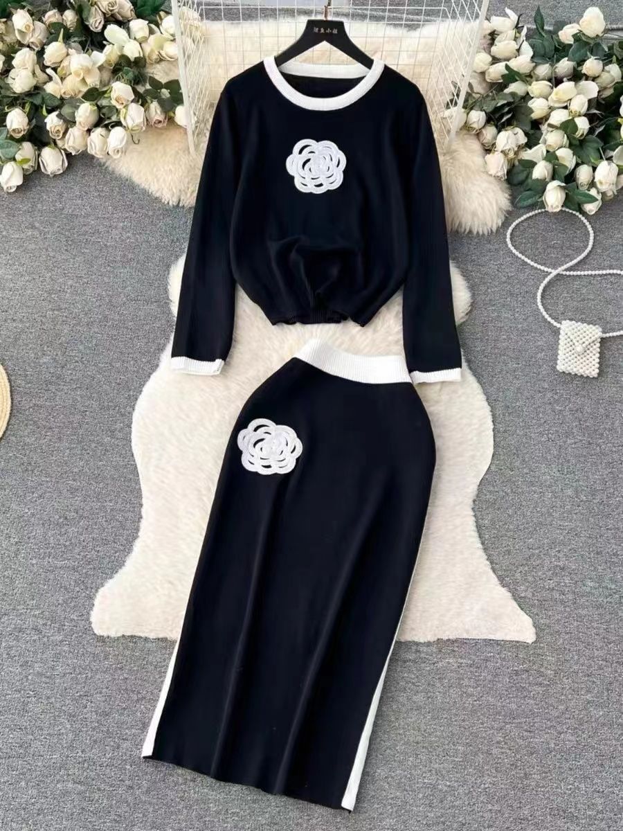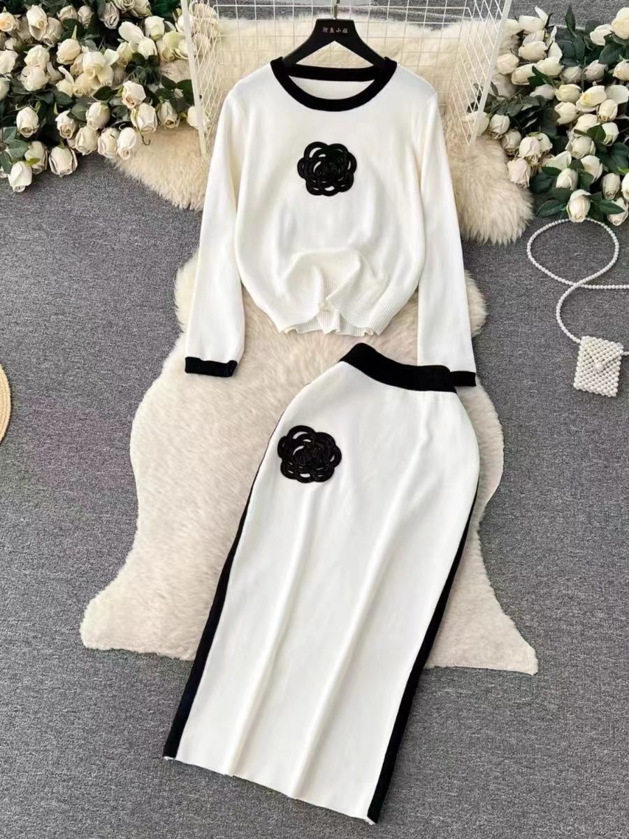 Crew-neck Loose-fit Knit Top And High-waisted Midi Skirt