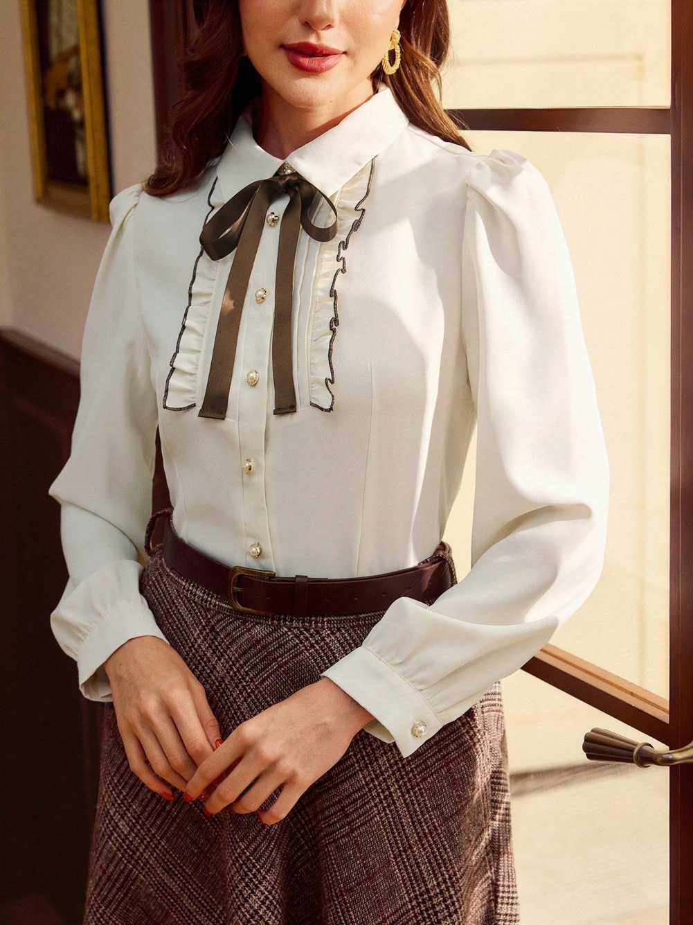Elegant Contrast-Color Defined-Shirt