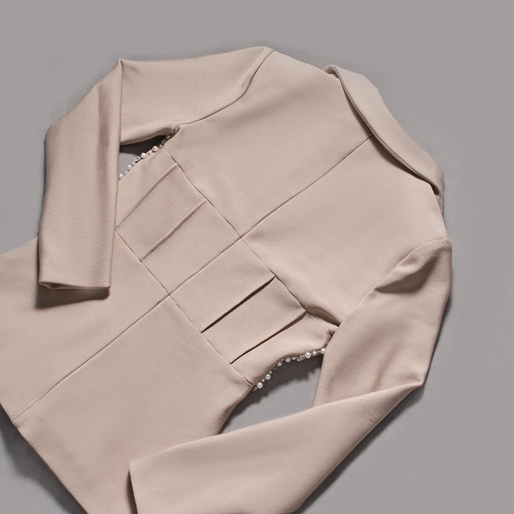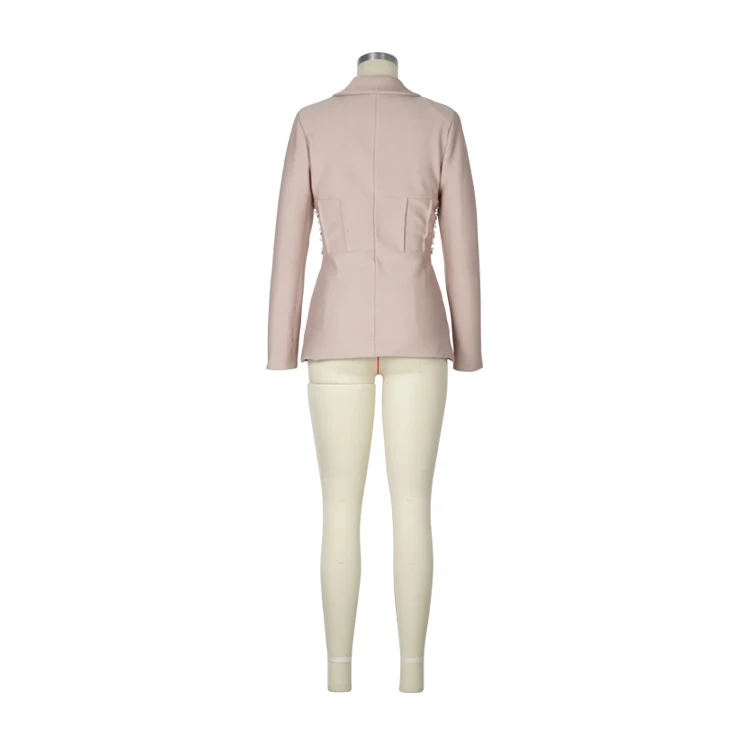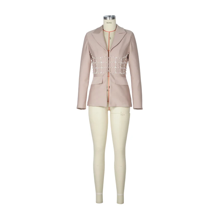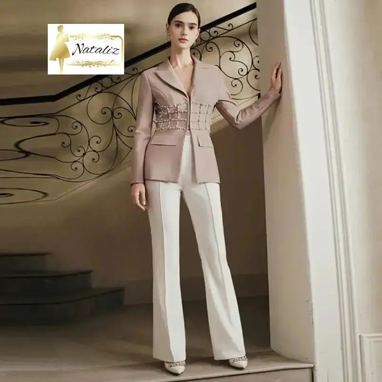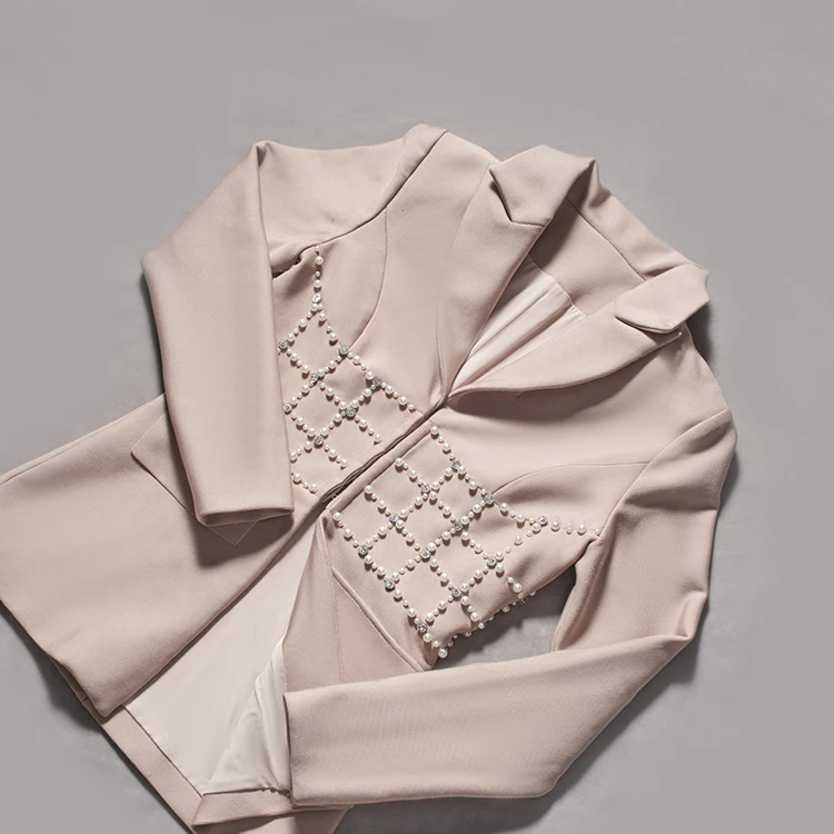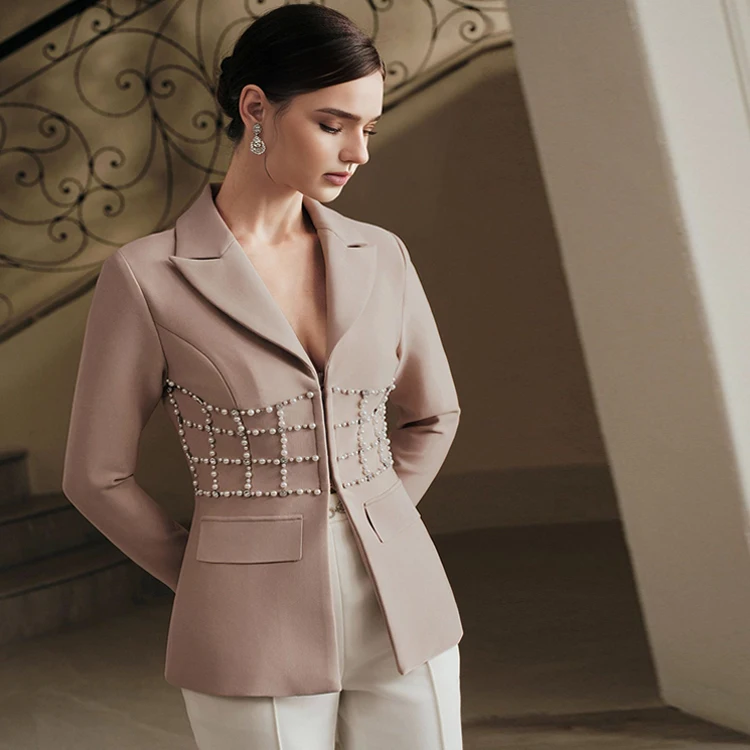 Elegant Women's Slim Fit Bandage Blazer With Waist Pearl Design