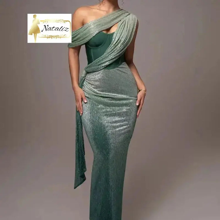 Green Color Slit Sleeveless Cross Body Dress