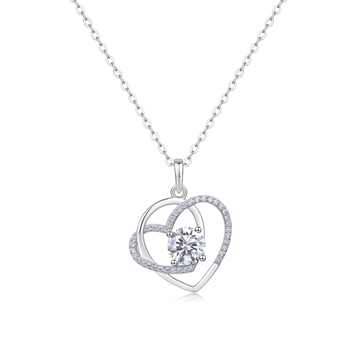 Heart To Heart - A Fashionable And Light Luxury Jewelry Pendant Necklace Set With Top-quality Moissanite, S925 Silver Plated Platinum