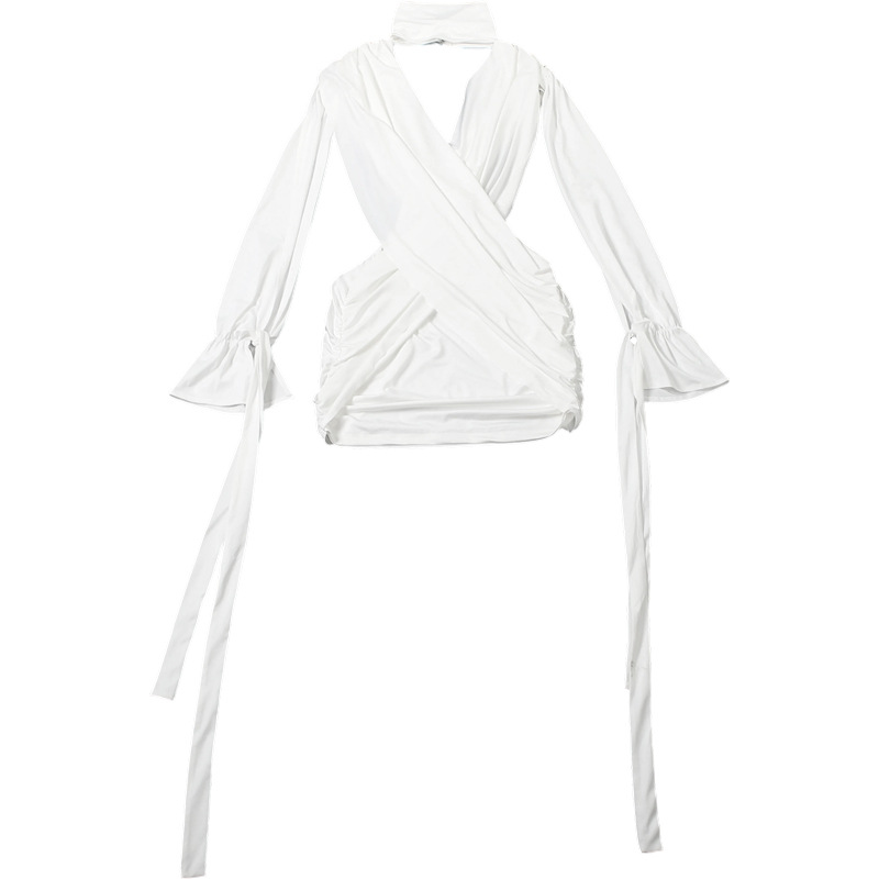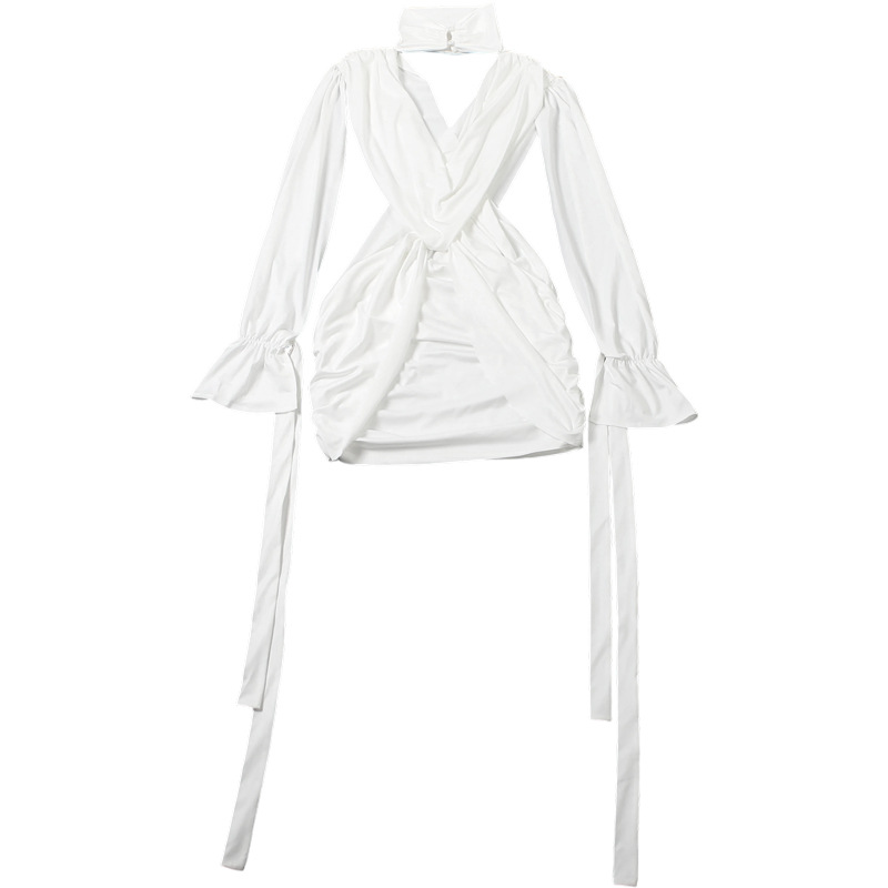 Hollowed-Out Long-Sleeve Sexy Midriff-Baring Bodycon Dress