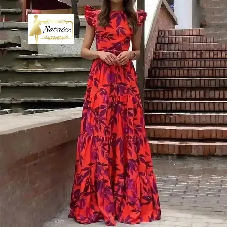 Long Breathable Women's Dress Flutter Sleeve