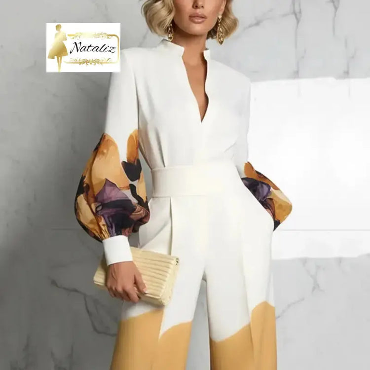 Long Puff Sleeves Abstract Printed Blouse