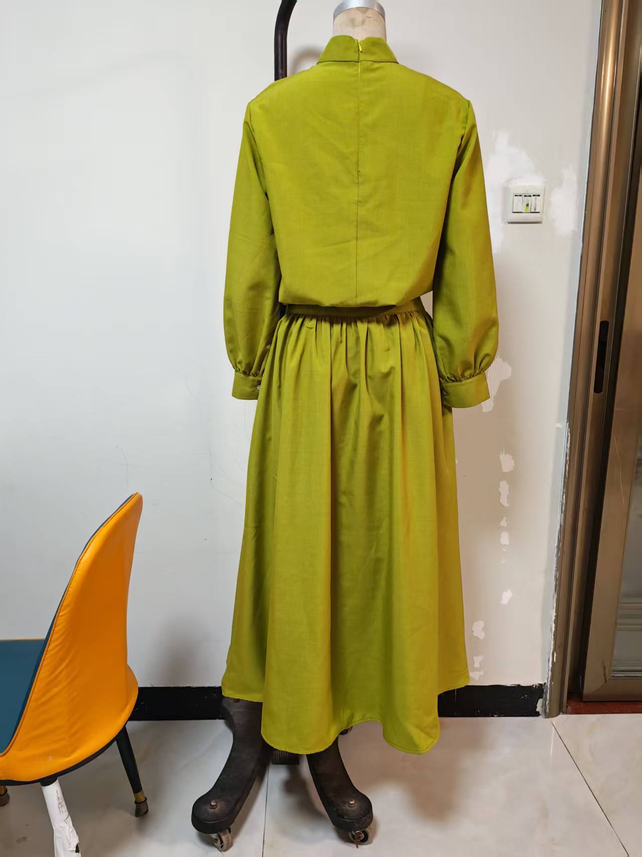 Solid-Color Loose Top And Pocketed Long Skirt Set
