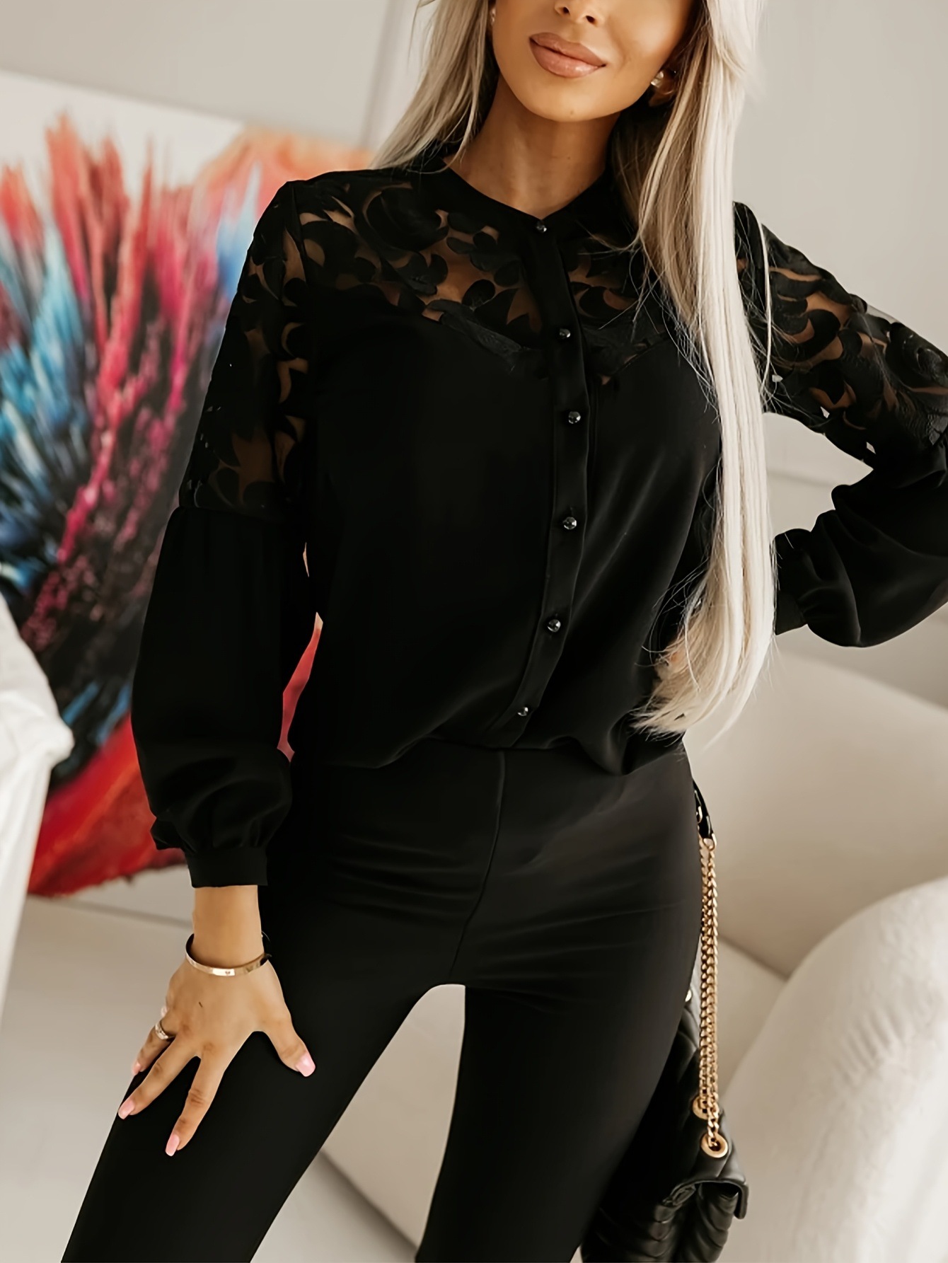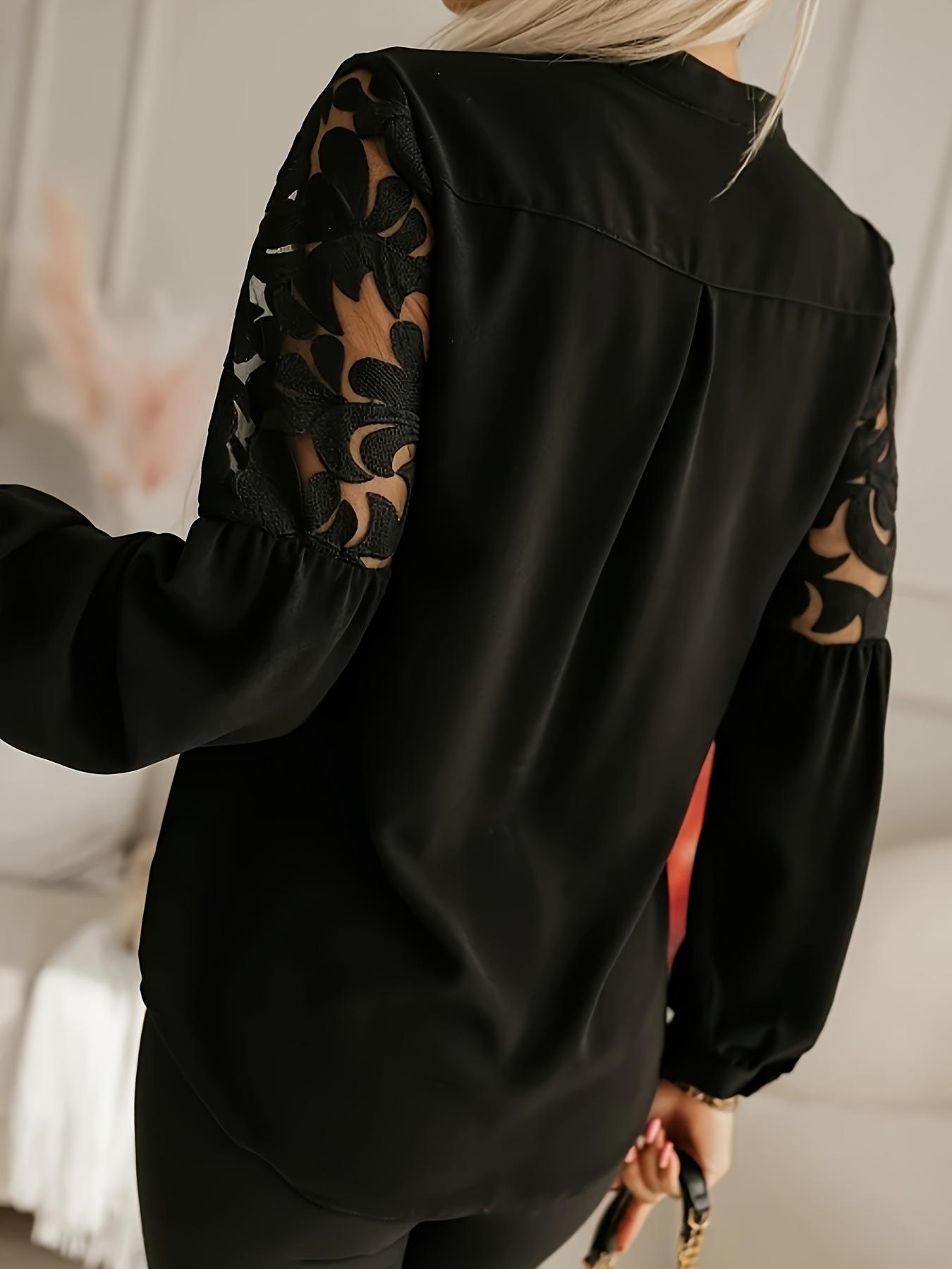 Stylish And Elegant Solid-color Long-sleeve Shirt With A Hollow-out Design
