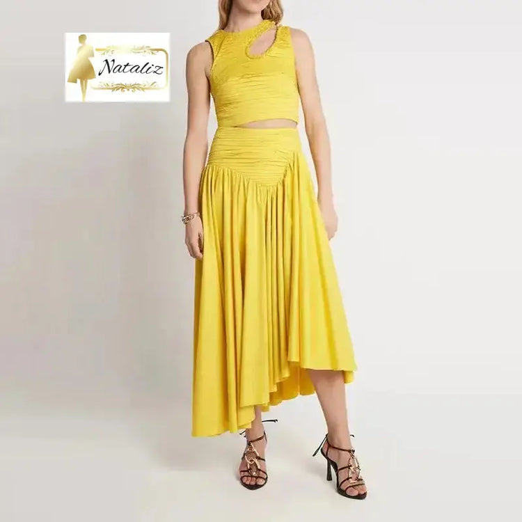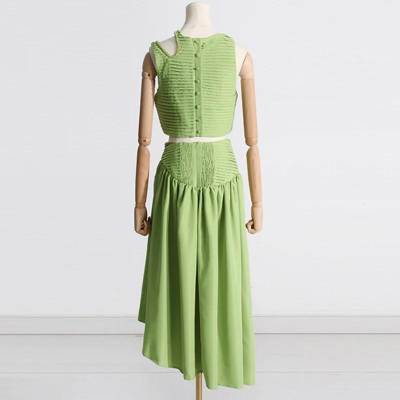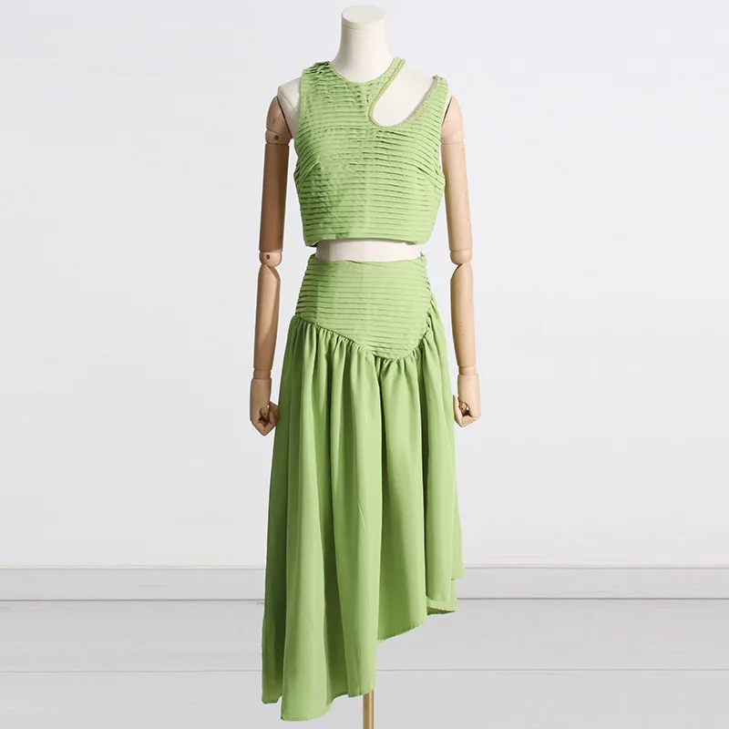 Top And Irregular Skirt Pleated 2 Piece Set