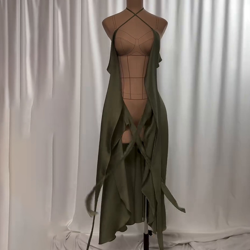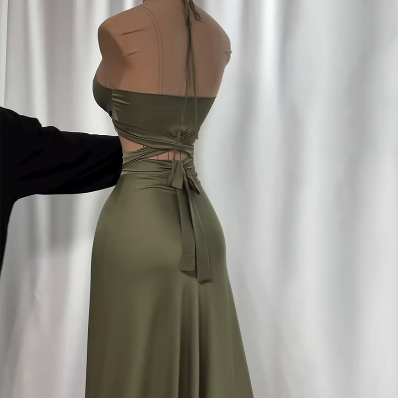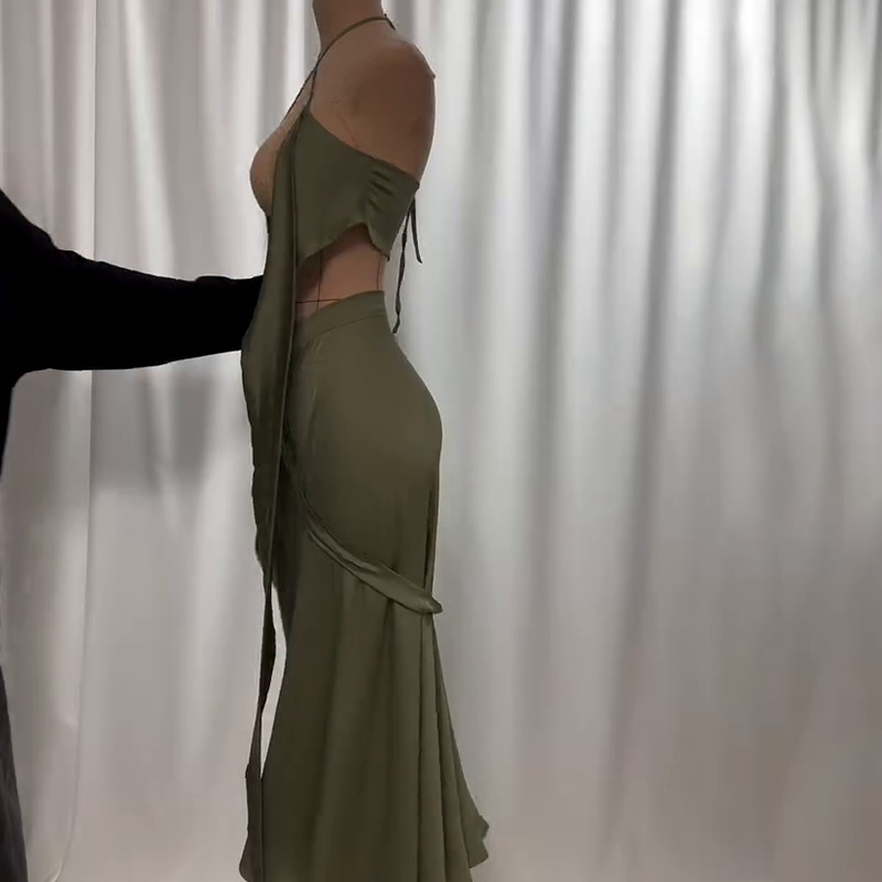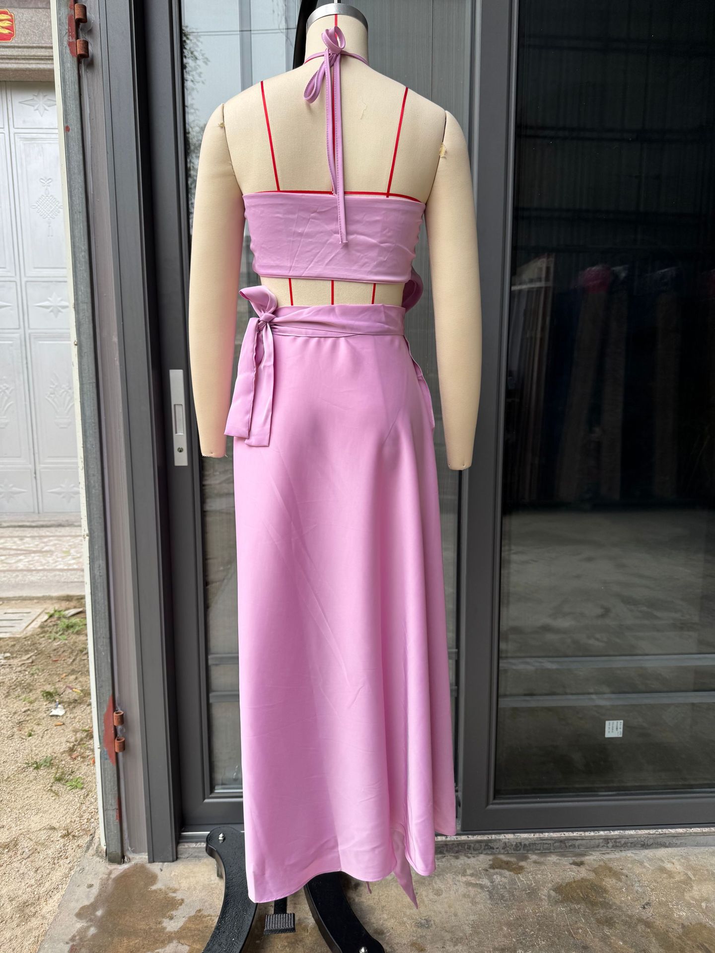 Tube-top Strap Vest And Waist-cinching Skirt Set