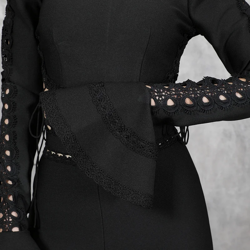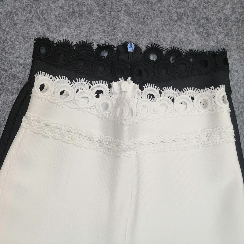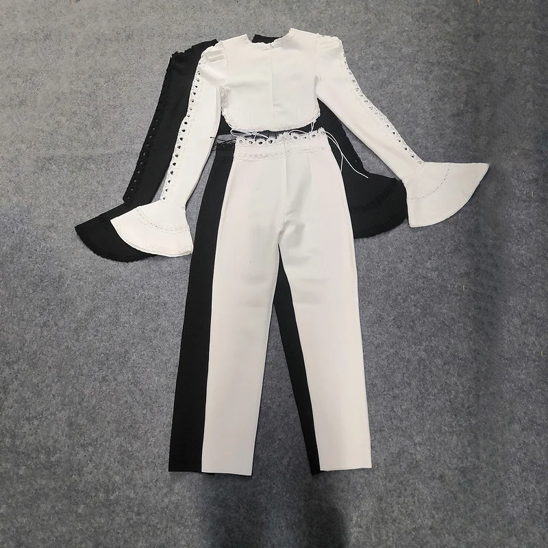 White or Black Flare Sleeve Lace-Up Hollow Slim Eco-Friendly Women's Two-Piece Set