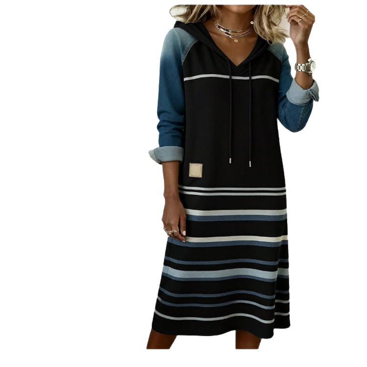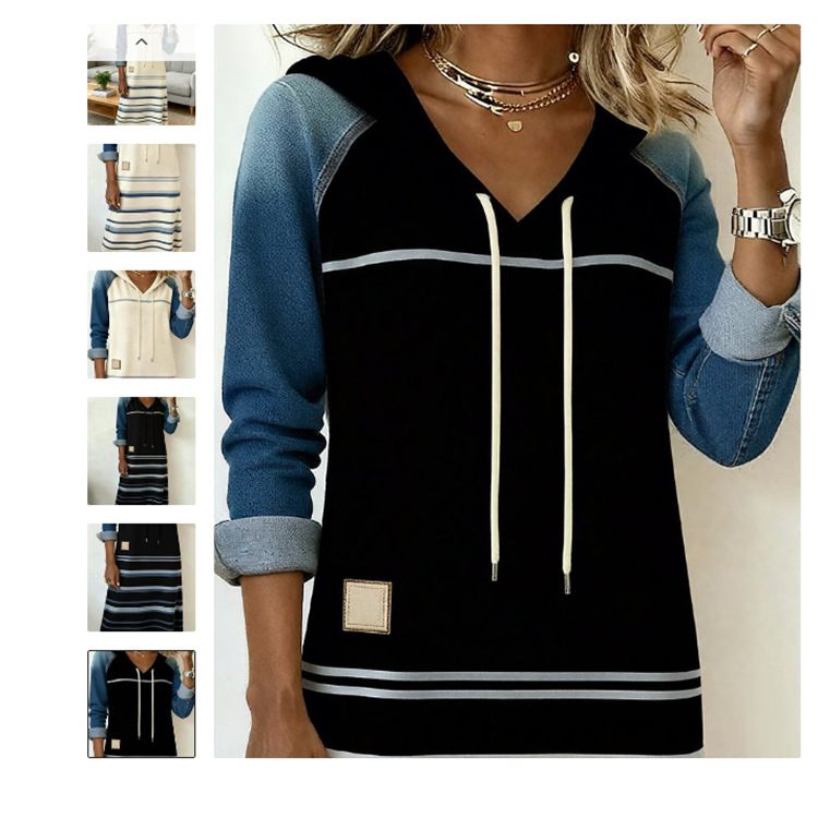 Womens Color-Block Denim Hoodie