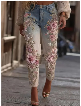 Women's Colorful Floral Loose-fit Jeans