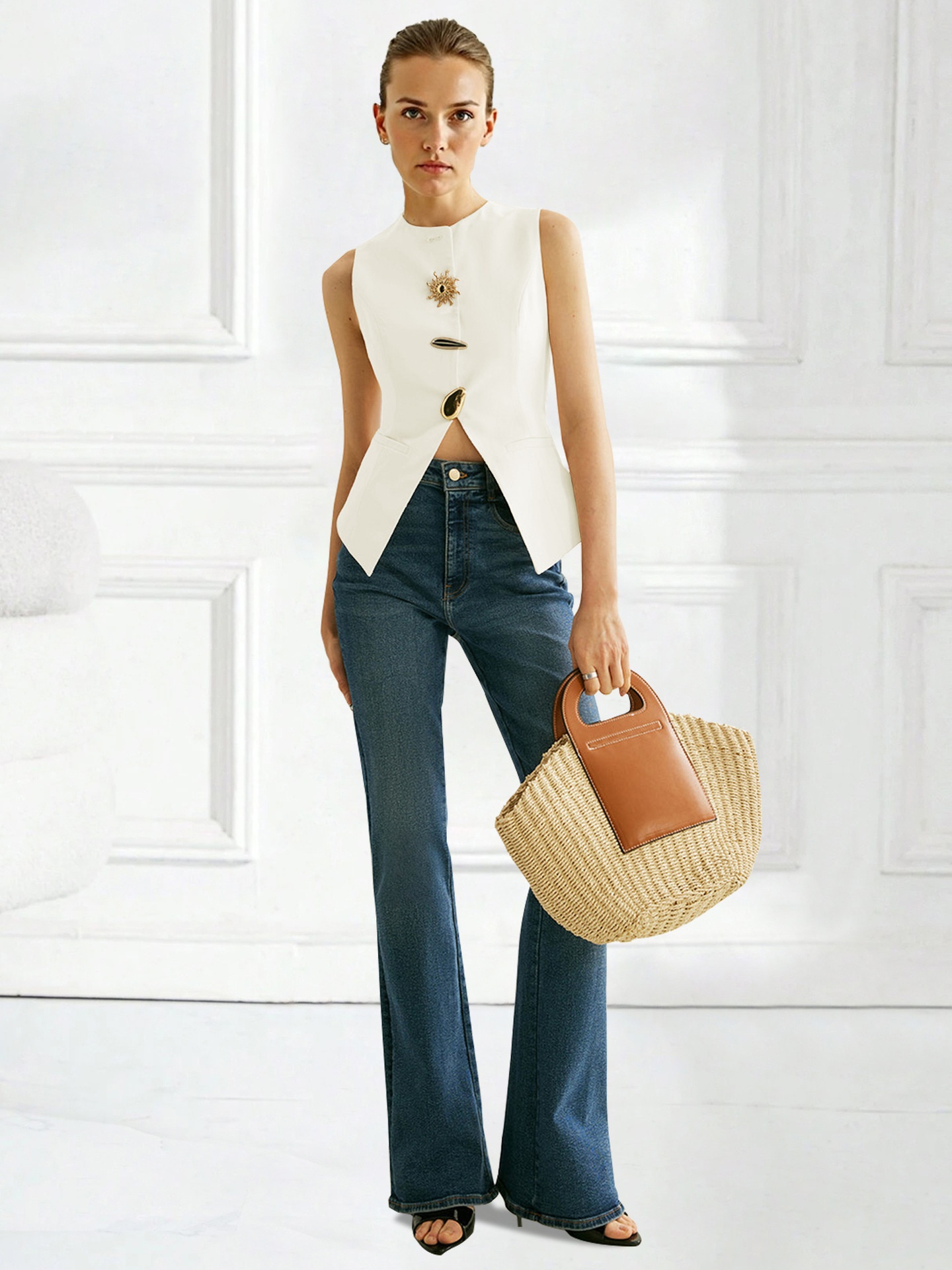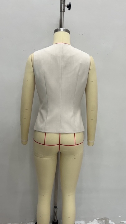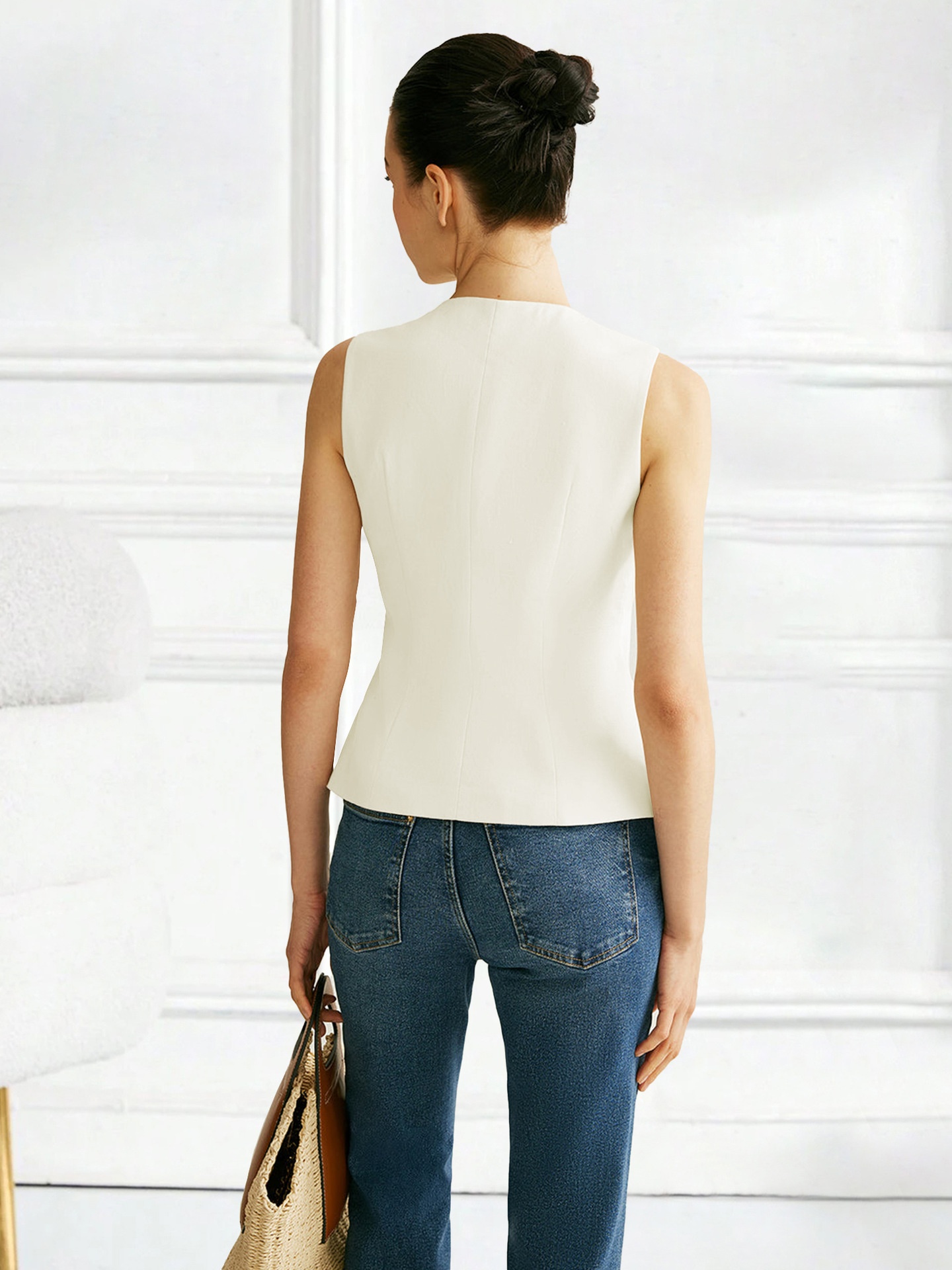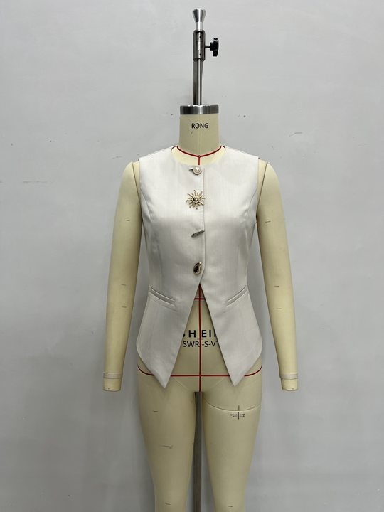 Womens European And American-style Decorative Button Solid-color Sleeveless Jacket