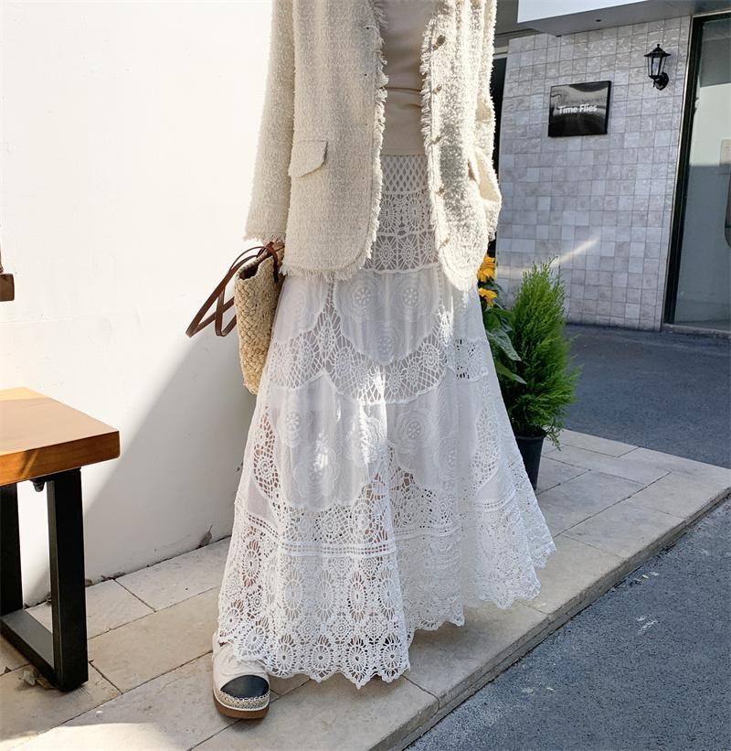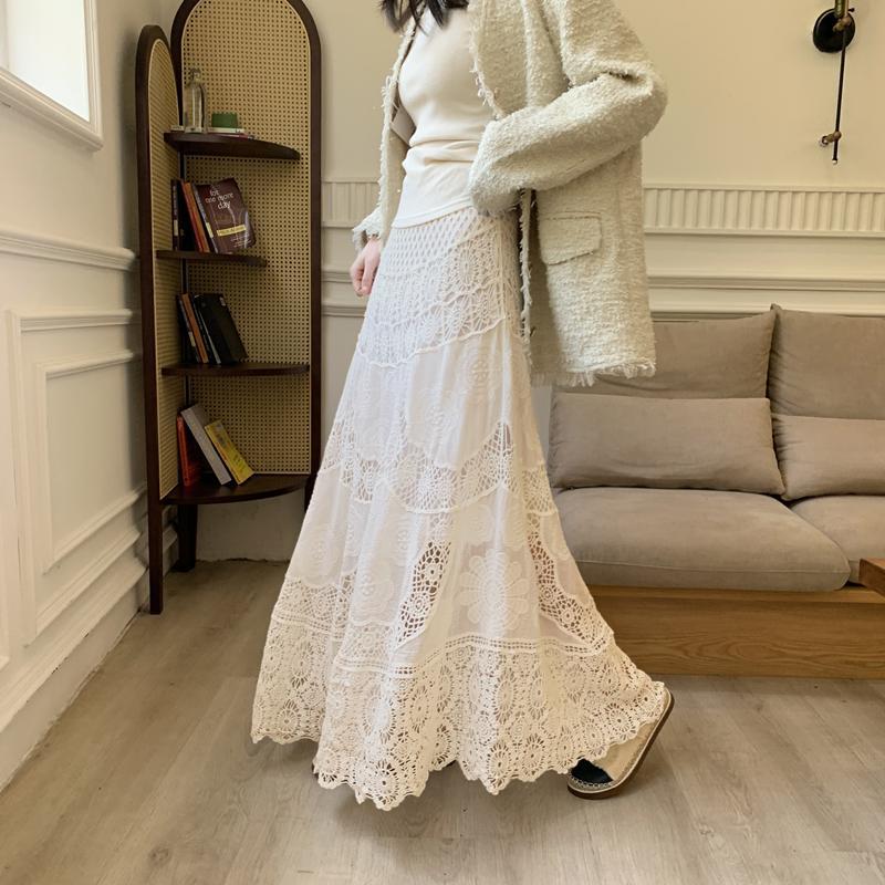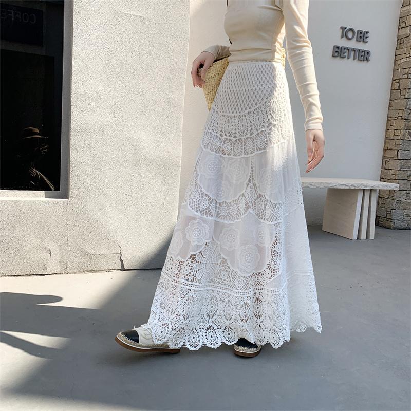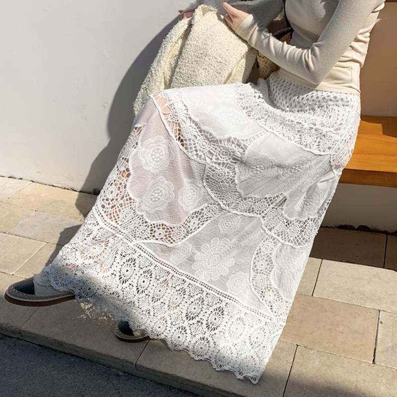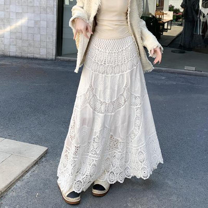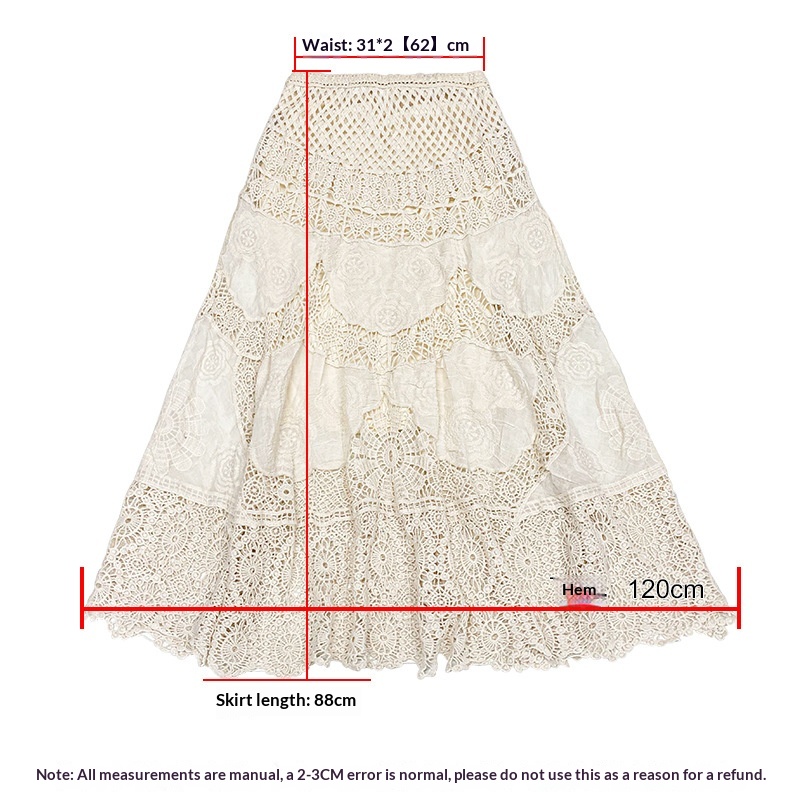 Womens Lace Retro French Crochet Hollow-Out Knit A-Line Skirt