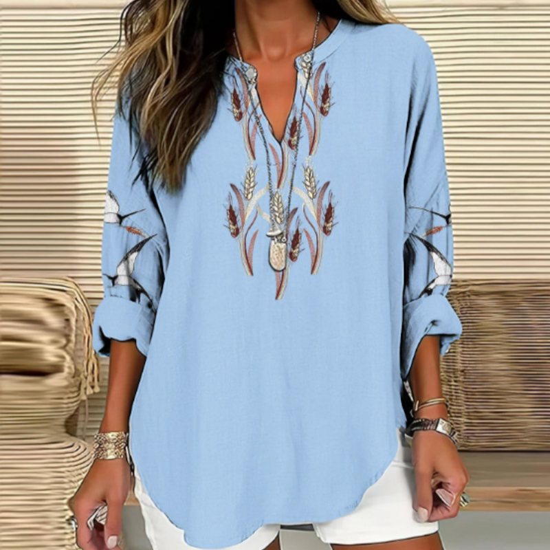 Women's Spikelet Art V-neck Casual Linen Blend Blouse
