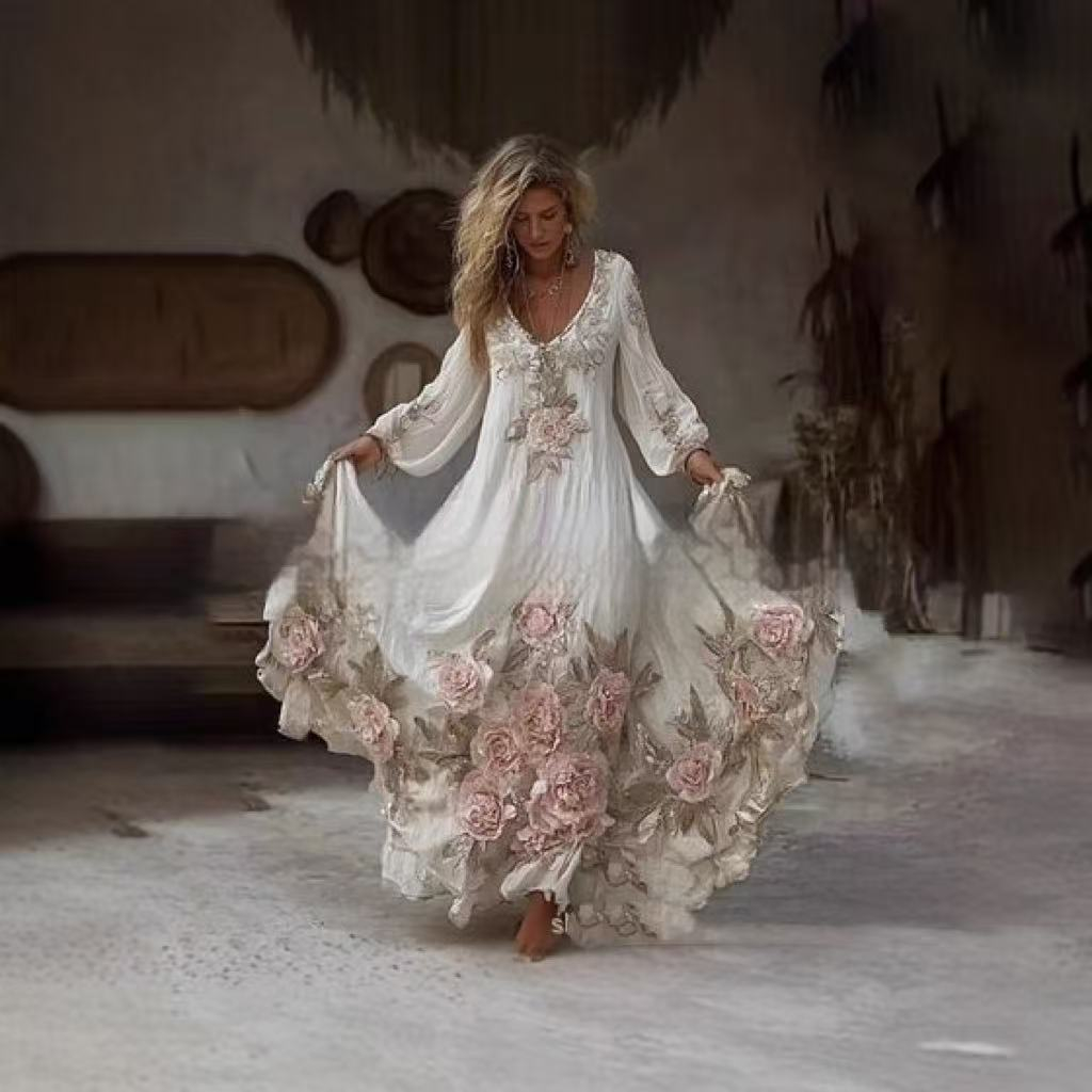 Womens Stylish And Elegant Floral Long-sleeve Dress
